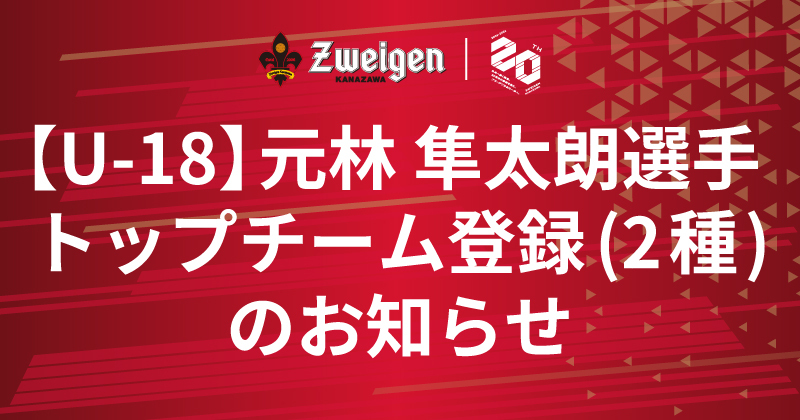 2026.3.19 NEW! 【U-18】元林 隼太朗選手 トップチーム登録(2種)のお知らせ
