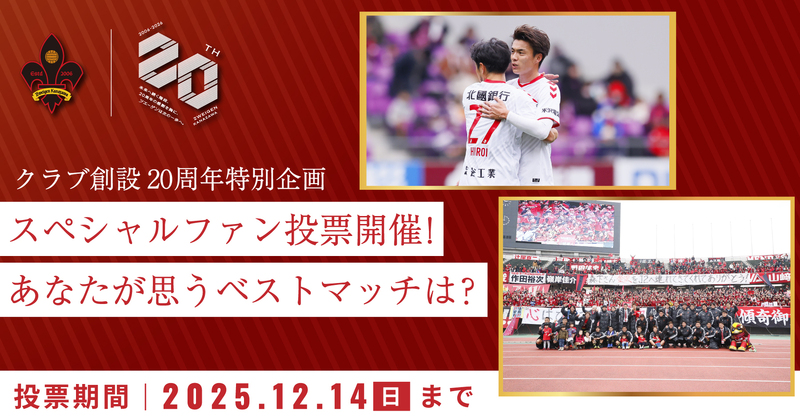 2025.11.28 NEW! 【ツエーゲン金沢ベストマッチ】クラブ創設20周年記念ファン投票企画実施のお知らせ