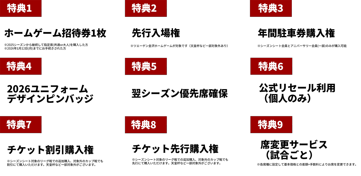 2026シーズンから、席変更サービスを開始します。席種ごとに設定した基準価格との差額+手数料を支払いいただくと、試合ごとに席を変更可能です。詳しくはこちらを確認ください。