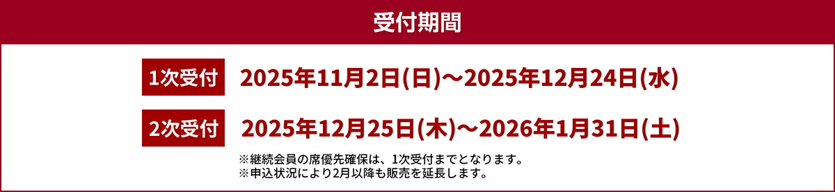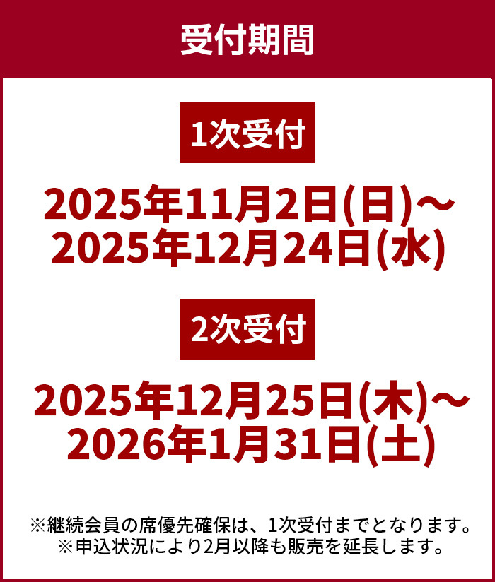 リセール・譲渡・席変更サービスをご利用いただくと、お持ちの会員証での先行入場はできなくなります。入場時は一般待機列にお並びください。